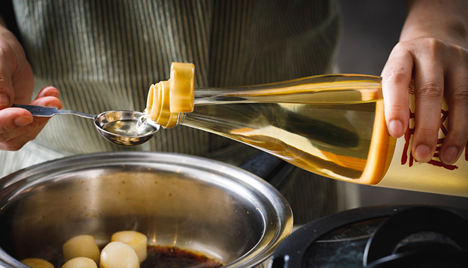 本みりんに含まれるアルコールが素早く食材にしみ込みます。また、原料であるもち米に含まれるアミノ酸、有機酸、糖類などの味が食材に行き渡り、深いコクと旨みが生まれます。