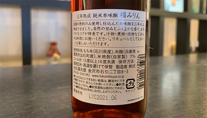 みりんが入ったボトルの裏ラベルを見ると、確認することができます。