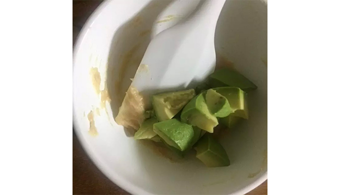 - アボカドと和え衣を合わせる。※アボカドをつぶさないように。